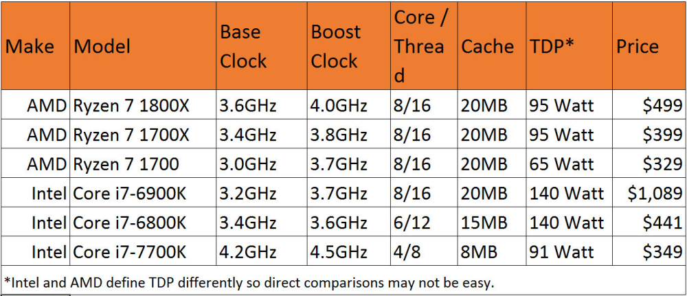 AMD's bedste af de nye Ryzen-processorer er Ryzen 7 1800X, der ifølge AMD's benchmarks i CineBench slår Intels i7 6900K med en CineBench-score på 1.601.