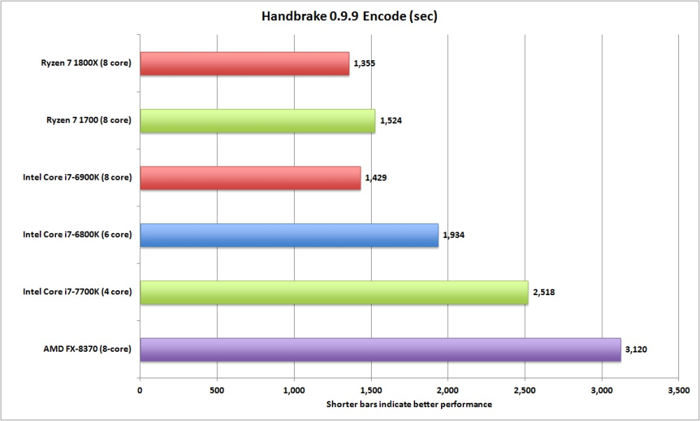 AMD's 1800X er kun en smule langsommere end Intels 6900K, som dog koster næsten det dobbelte. Vi kalder det en sejr for AMD igen.