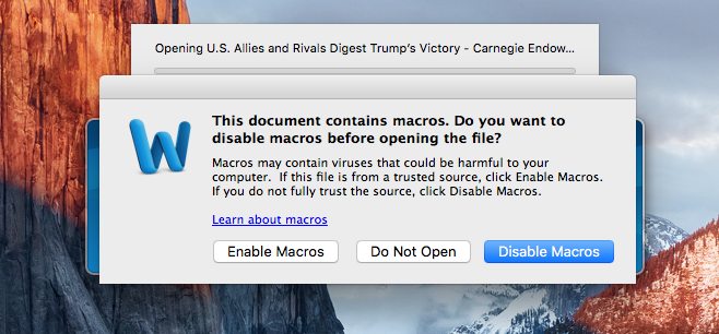 For blot få uger siden så vi også et makro-baseret angreb rettet mod Mac-brugerne, og det var i form af et Word-dokument.