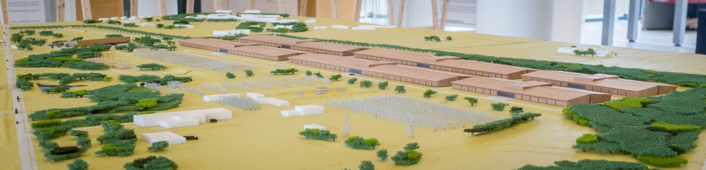 I den stille forhal 15 kilometer fra Viborg finder vi plancher og miniature-modeller af området og de haller, som snart bliver opført.