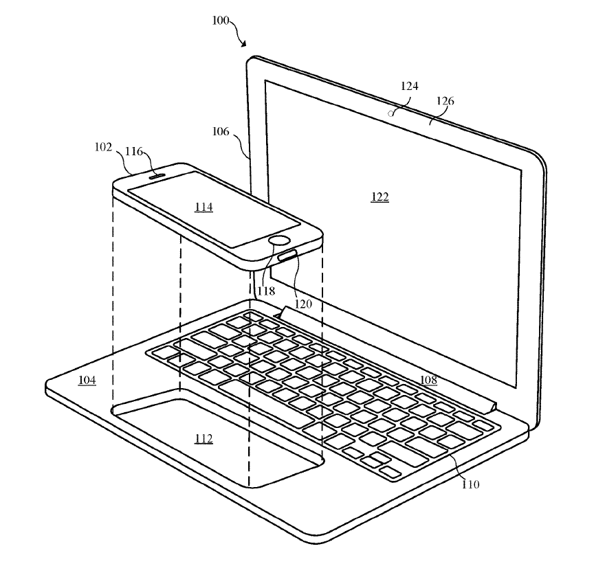 Alt afhængig af synsvinkel beskriver patentet fra efteråret 2016 en Mac med computerkræfter fra en iPhone, eller en iPhone med tastatur og stor skærm.