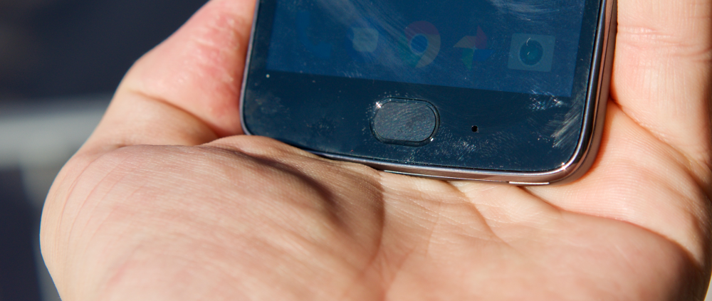 Under skærmen sidder en uventet hurtig fingerskanner, der samtidig kan fungere som tilbage-, hjem- og multitasking-knap i stedet for telefonens software-knapper.