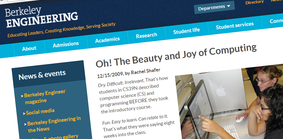 Berkeley havde ikke alene arbejdet med indholdet, men også med titlen, der skiftede fra navnet "CS39N" til "The Beauty and Joy of Computing" inspireret af en tale, holdt af en kvindelig forsker hos IBM.