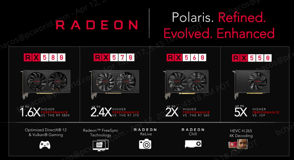 De nye kort bygger på den samme bagvedliggende teknologi som i sidste års Radeon RX 400-kort med fokus på relativt prisvenlige kort til midtersegmentet.