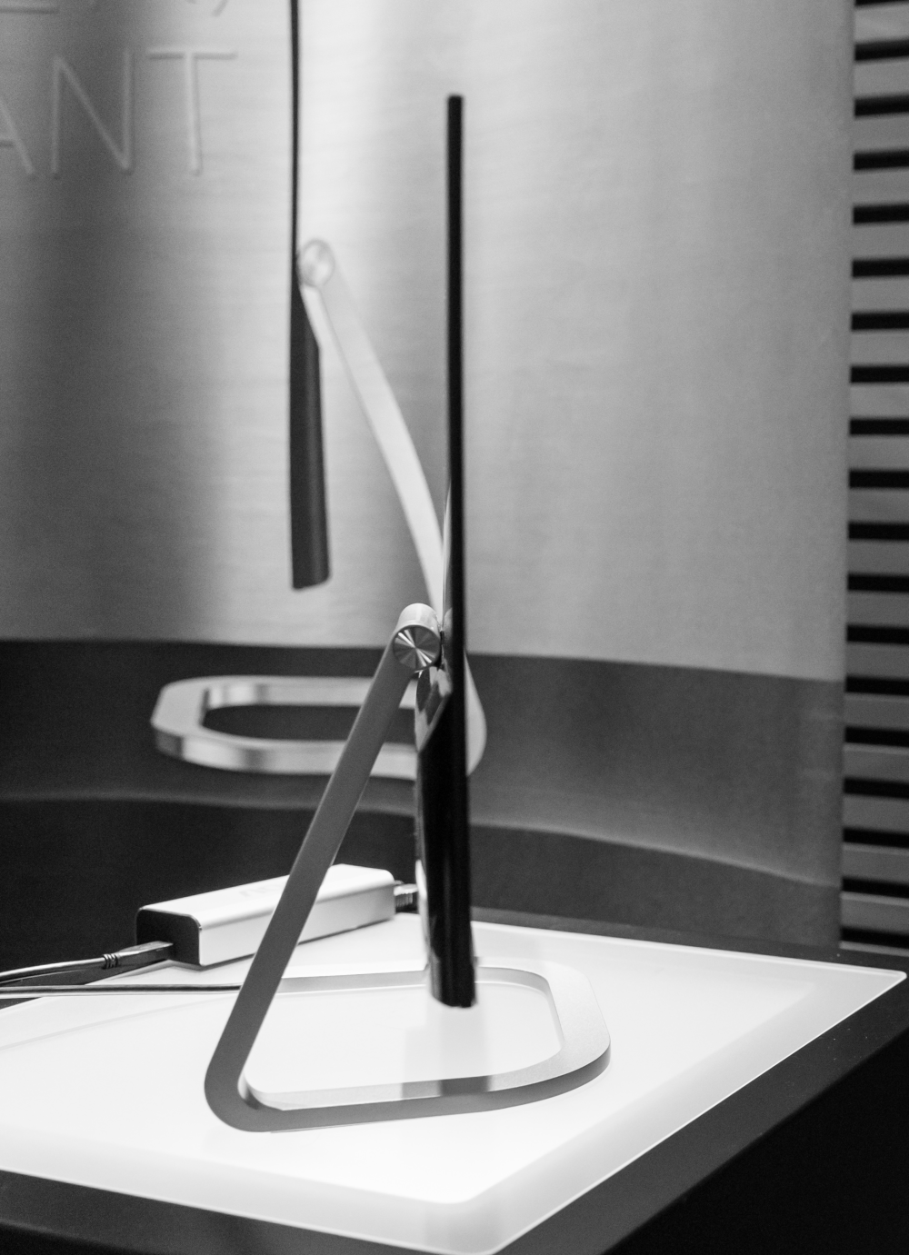 "Vi fokuserede fra begyndelsen på standen og kablerne. Men man begynder med en idé - og så bliver man nødt til at indgå kompromisser undervejs. Men se på det endelige produkt: Der kan du se, at ideen stadig er der. Derfor løber kablet inde i skærmens stand, selv om det var svært for teknikkerne at udforme det sådan."