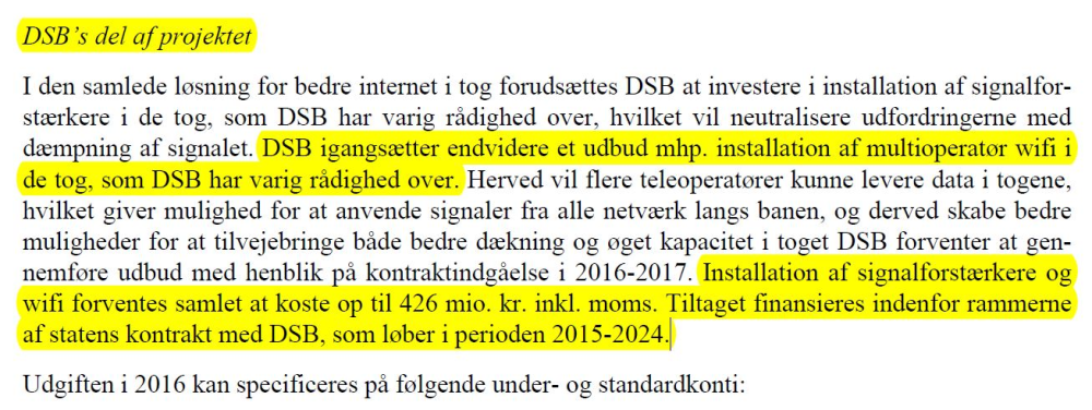Der står dog offentligt tilgængeligt i et aktstykke fra sidste efterår, at DSB forventes at bruge op mod 426 millioner kroner på projektet. (Se billedet)