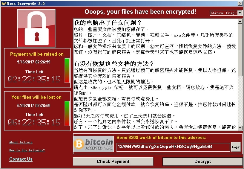 Løsesums-kravet, der har mødt WannaCry-ofre i mere end 150 lande findes på 28 forskellige sprog, og ifølge flashpoints analyse er de kinesiske og engelske versioner de eneste, der ikke stammer fra Google Translate.