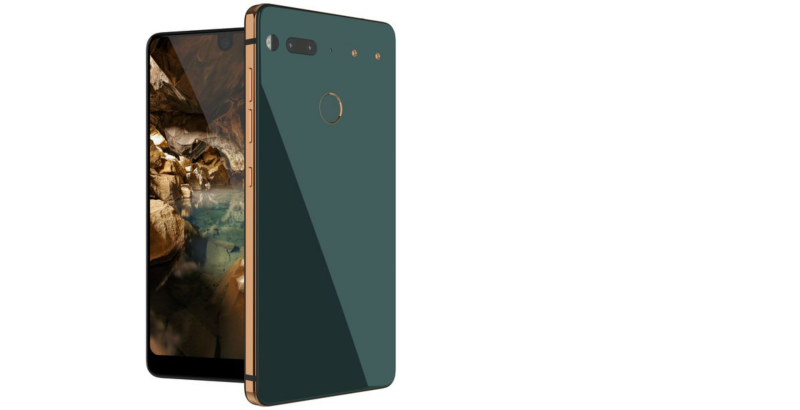Ligesom Samsungs seneste Galaxy S8 og LG G6 består Essential Phones front næsten kun af skærm med kun en lille smule sort kant i bunden af telefonen og omkring front kameraet, der går en halv centimeter ned midt i skærmen.