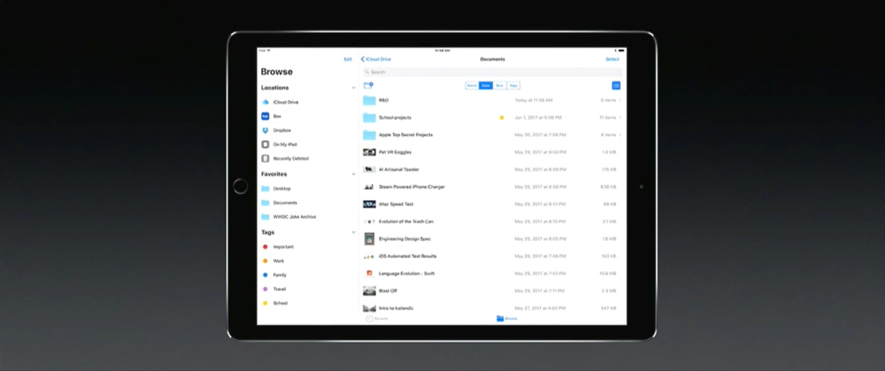 Som først nævnt er intet tilfældigt ved Apples præsentationer. Derfor kan det heller ikke overses, at Craig Frederighi på scenen ved demoen af den nye File-app til iPads flyttede rundt på en fil kaldet "VR Goggles."