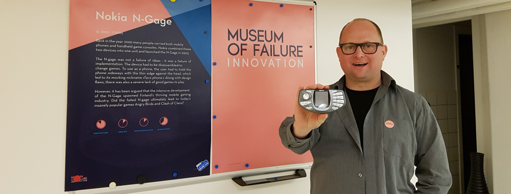 Her udstiller han blandt andet Apples fejlslagne PDA Newton, Google Glass og Nokias gamer-telefon, N-Gage.
