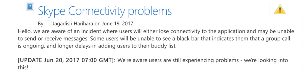 Microsoft selv skriver på Skypes service-forum, Heartbeat, at selskabets teknikere er opmærksomhed fejlmeddelelserne, og at der i øjeblikket bliver arbejdet på sagen.