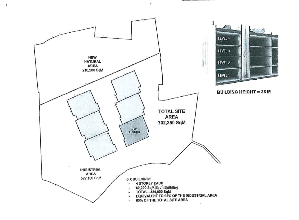 Antal bebyggede kvadratmeter: I alt 480.000 kvadratmeter fordelt på seks bygninger af 40.000 kvadratmeter.