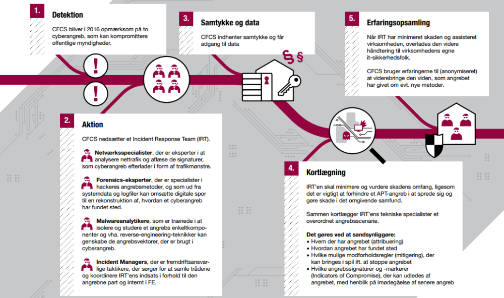 I det konkrete tilfælde er CFCS rykket ud med et såkaldt incident response team, der yder teknisk bistand, og efterretningstjenesten har hos de danske hosting-udbydere fundet malware, der kan fjernstyre inficerede maskiner og stjæle loginoplysninger.