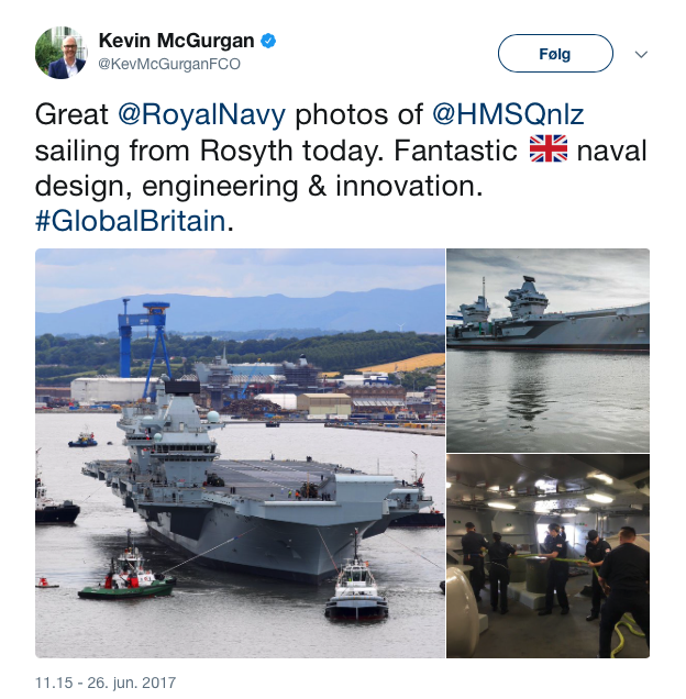 HMS Queen Elizabeth er et 65.000 tons tungt hangarskib og er netop blevet sat i søen for at gennemføre sine første testsejladser, inden det kan tages i brug af den britiske flåde i løbet af 2020.
