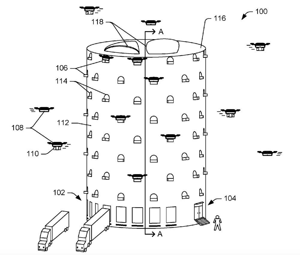 I patentansøgningen bliver dronetårnene beskrevet som en lagerfacilitet i flere etager, der er designet til at facilitere, at droner kan lande og lette fra bygningen, der typisk vil være placeret i tæt bebygget område.