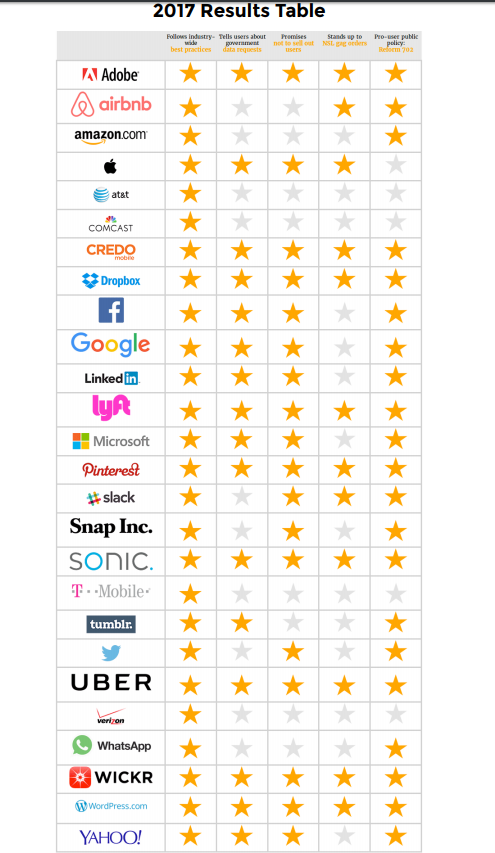 På listen kan du se, hvor godt de forskellige selskaber beskytter dine oplysninger med regeringer, der gerne vil kigge med.
