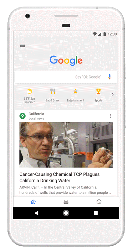I starten af 2017 introducerede Google nyheder direkte i Google-app'en under søgefeltet, og det er den funktion, som nu bliver udvidet.