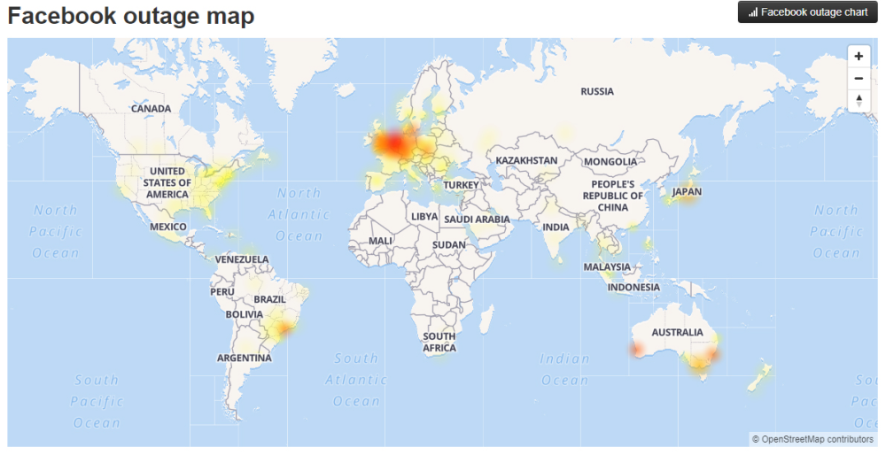 Websiden Downdetector, der tracker driftssituationen på en række populære sider og tjenester, viser i øjeblikket, at nedbruddet især har ramt Europa, men også Australien, Japan, USA, Sydamerika og flere andre lande og regioner.