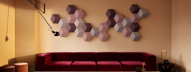 I hans søgen efter indlysende og naturlige geometrier fandt han de sekskantede moduler som velegnede former, der kunne bryde lyden med både sine skarpe kanter og specielle materialer.