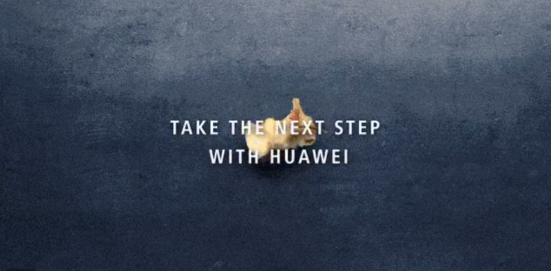 “Take the next step with Huawei,” lyder budskabet i GIF'en, som du blandt andet kan se på Twitter her.