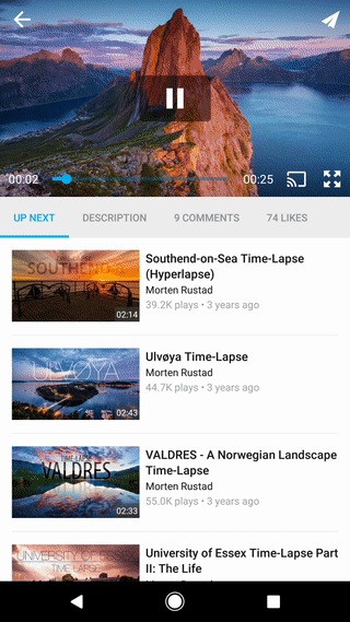 Video-tjenesten Vimeo fungerer også som Instant App, så du via en URL oplever en app-lignende brugerflade, hvor du kan se og søge efter videoer, som var det en app.