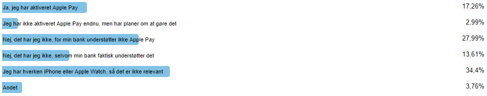 Der er afgivet 904 stemmer, og afstemingen viser blandt andet, at mindre end hver femte på nuværende tidspunkt har aktiveret Apple Pay.