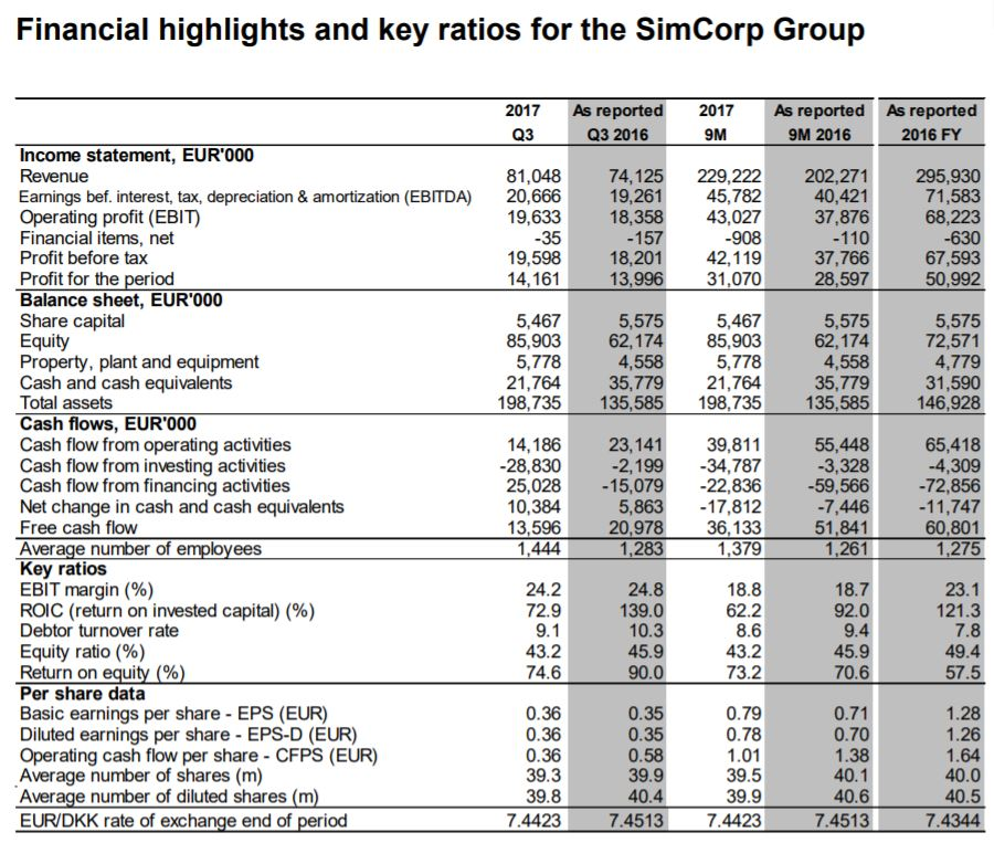 Omsætningsvæksten er på 10,4 procent og dermed fortsat inden for de 9-14 procent som SimCorp har lovet markedet.