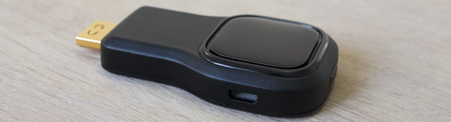 Airtames produkt er en lille dongle, der trådløst sender et billedesignal fra en computer til en skærm i stil med Googles Chromecast.