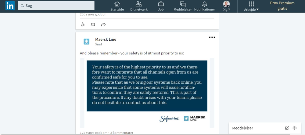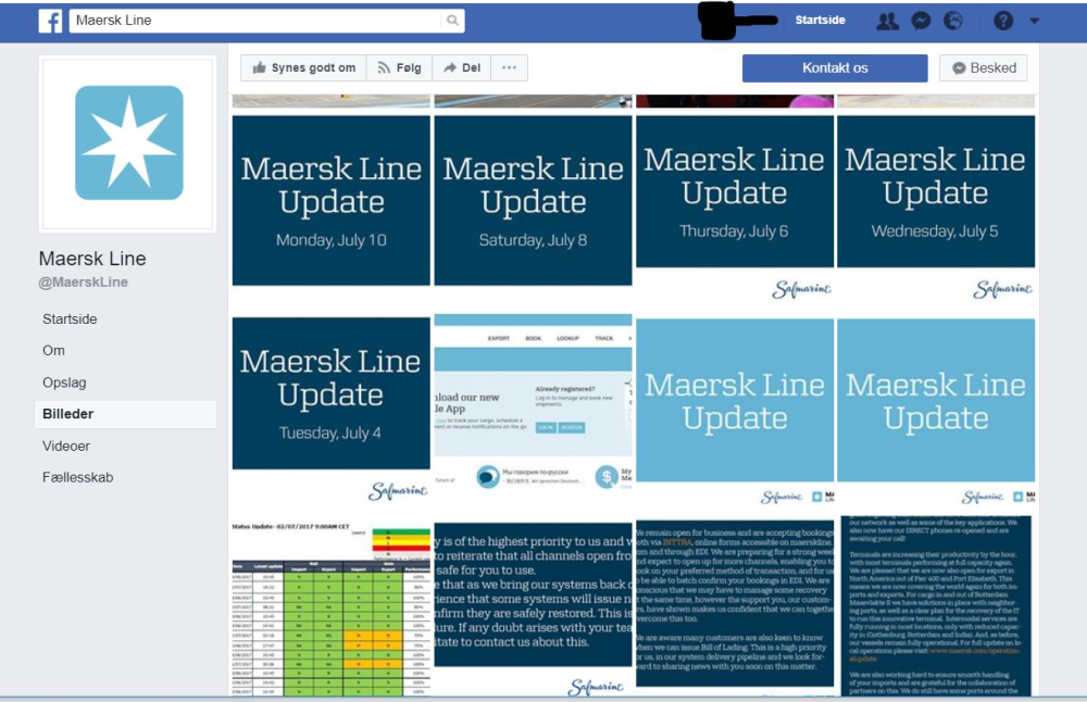Her skrev A.P. Møller - Mærsk løbende opdateringer, der kunne nå omverden, selvom det interne system var nede. De sociale medier kunne både medarbejderne, kunder og pressen nemlig tilgå, selvom virksomhedens it-systemer var brudt sammen.