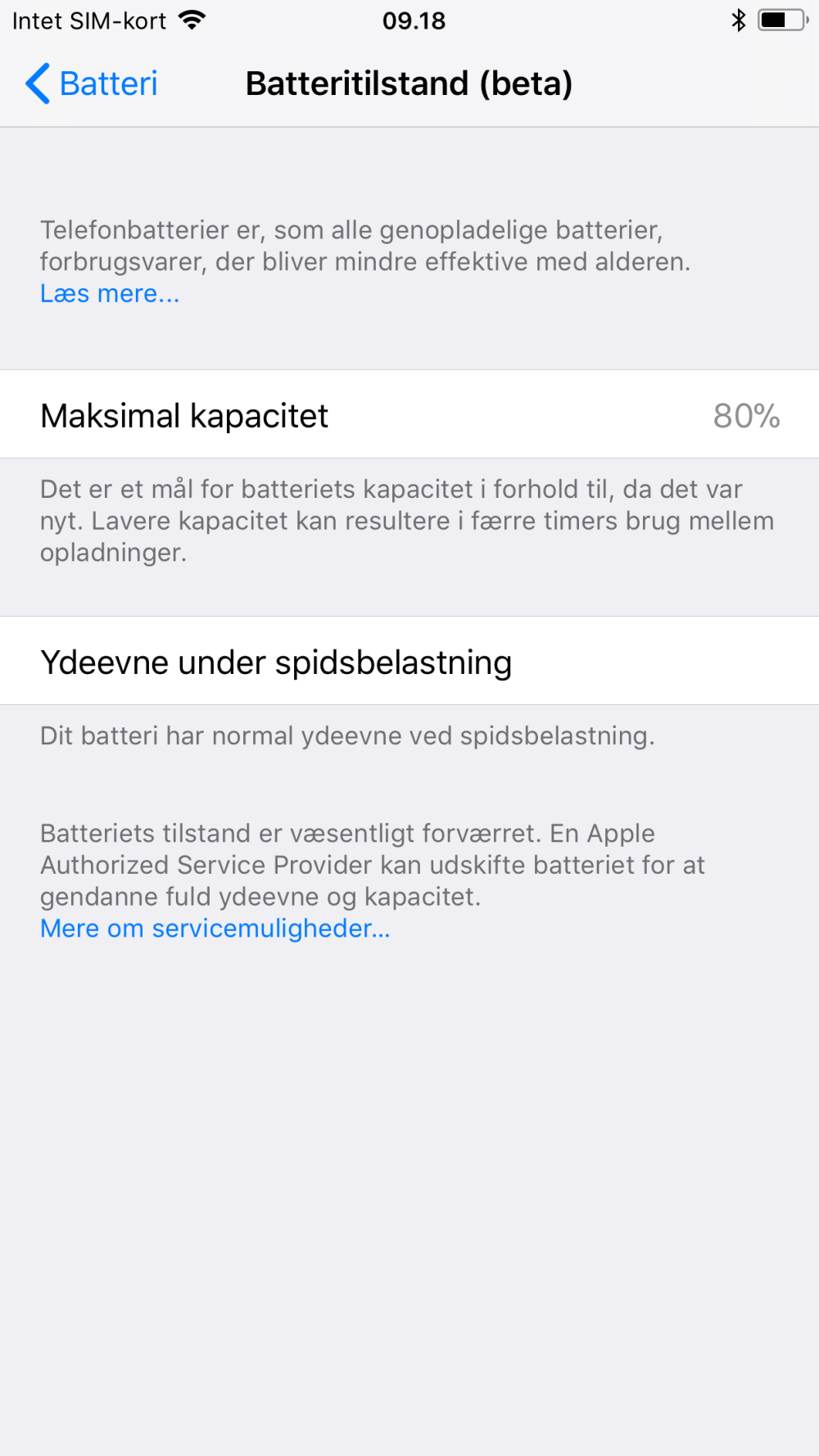 Dette ser du under Indstillinger -> Batteri -> Batteritilstand.