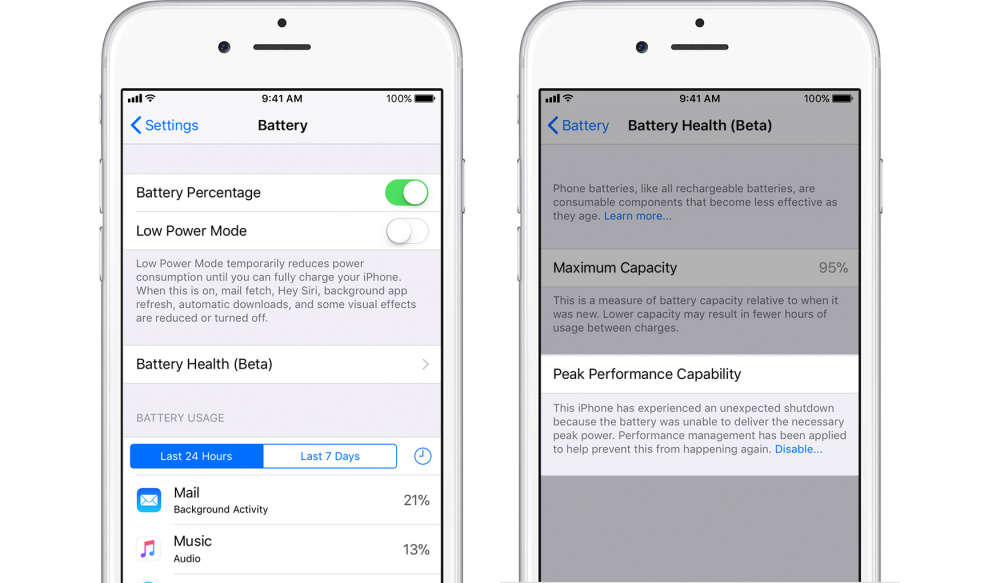 Formålet var at sænke telefonens ydeevne for at undgå pludselige genstarter på grund af ustabilitet. Samtidig ville Apple med lavere performance sørge for, at batterilevetid ikke blev ramt, selv om batteriet var gammelt.