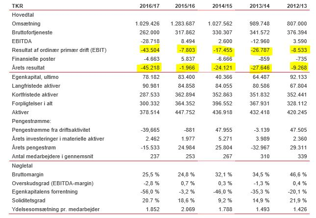 Kigger man på resultatet af den primære drift, som man betegner som udtryk for, hvordan virksomheden klarer sig med sin kerneforretning, så står det heller ikke for godt til.