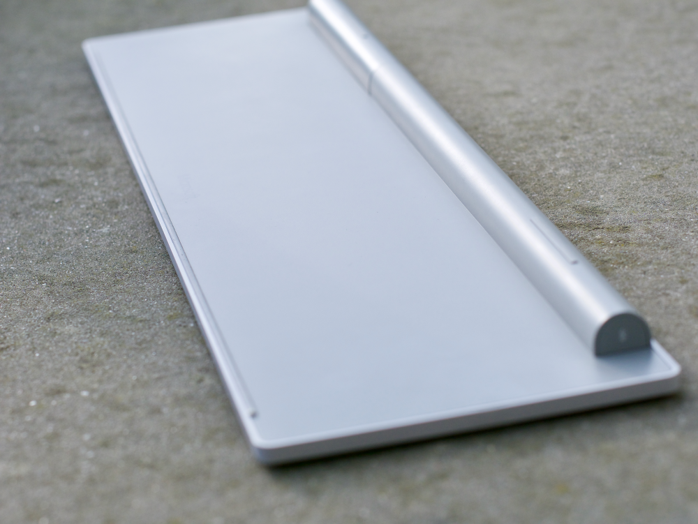 Selve tastaturet er utroligt tyndt, men en cylinder løfter tastaturet og giver det en behagelig hældning.