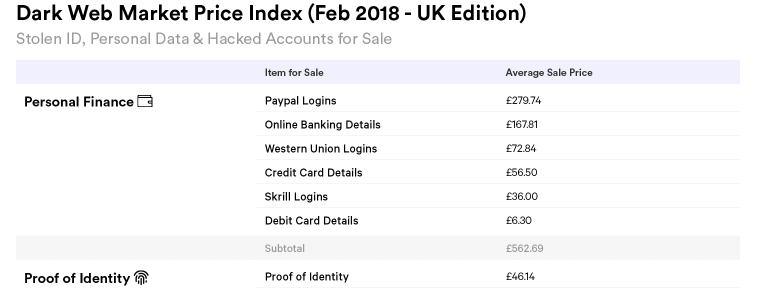 “Det er en kendt fremgangsmåde hos de it-kriminelle at åbne kredit i andre menneskers navn. Derfor bliver alt fra scannede pas til selfies og elregninger købt og solgt. Prisen afhænger af, hvor let en given vare er at bruge til svindel,” skriver Top10VPN i indekseringen.
