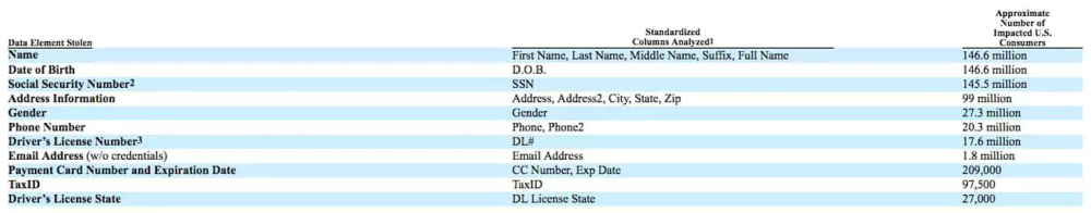 I første omgang mente Equifax ellers, at der var tale om, at 143 milioner amerikaneres CPR-numre, fødesldatoer, kreditkortoplysninger og andre personlige oplysninger, var blevet hacket.