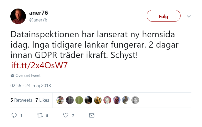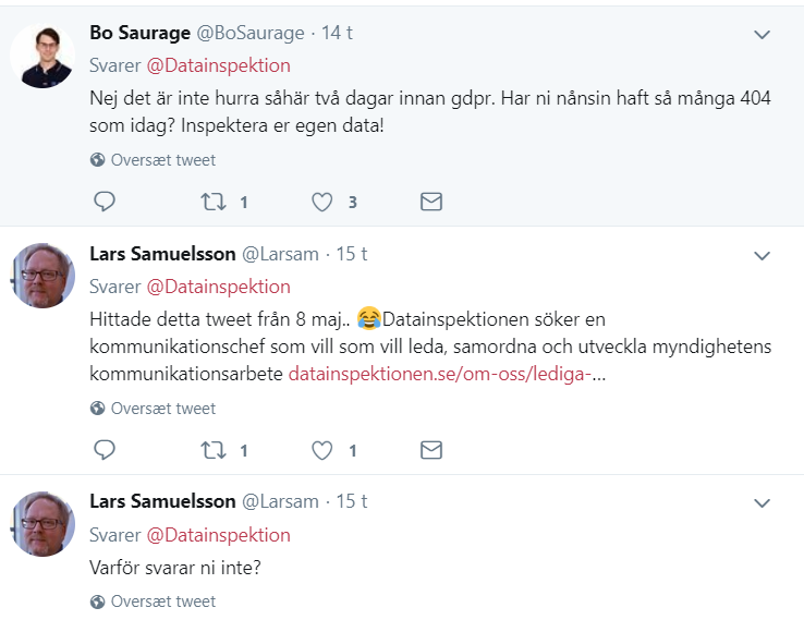 Flere links til vigtige GDPR-informationer, som givetvis er blevet delt i flere år med svenske brugere, er nu døde.