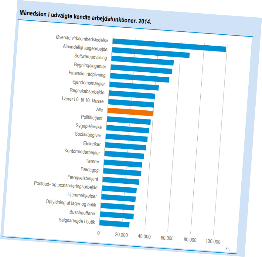 I 2014 producerede Danmarks Statistik en opgørelse over gennemsnitsløn og arbejdsfunktioner.