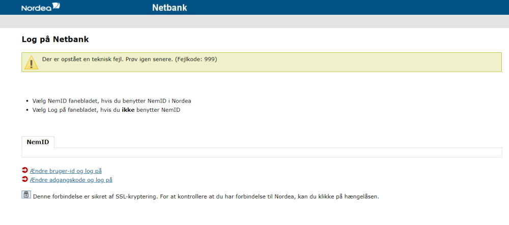 Denne gang er der tale om Nordeas netbank, der har været umulig for Nordea-kunderne at tilgå siden i morges.