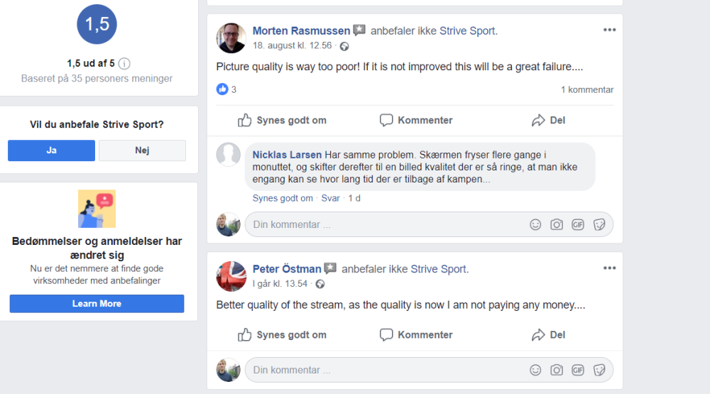 De negative kommentarer fortsætter i lang tid, hvis man scroller ned på Strives Facebookside, og det er kun kvaliteten, der klages over.