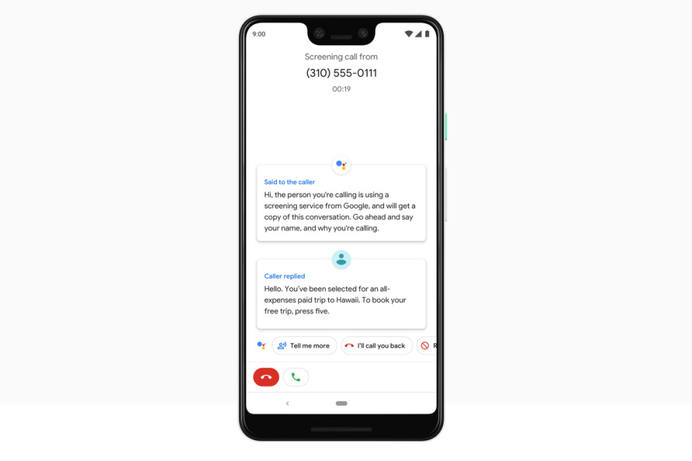 Ekviperet med denne, kan et opkald screenes og i stedet varetages af Googles assistent, som vil tekste samtalen for en.