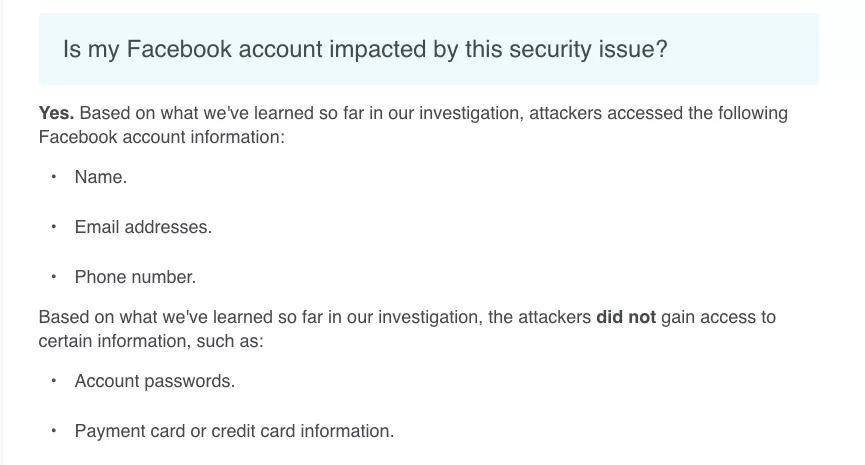 Facebook oplyser, at der indtil videre ikke er tegn på, at de stjålne data er blevet misbrugt.