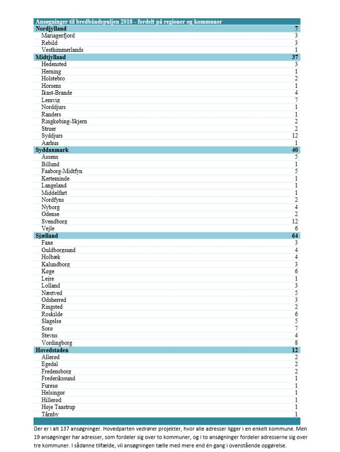 De 137 ansøgninger svarer til en fordobling af antallet af ansøgninger i forhold til sidste år. De dækker over ønske om forbedrede internetforbindelser til i alt 6.000 danske adresser.
