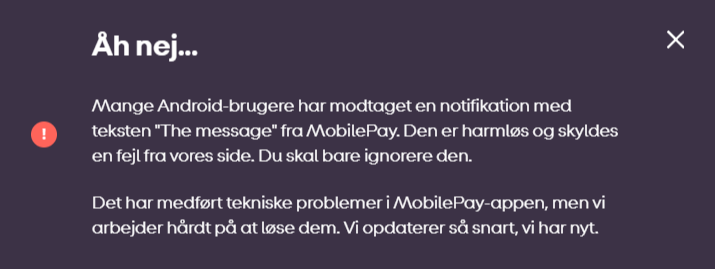 De 1,6 millioner fejlbeskeder svarer til, at omkring 40 procent af de omkring fire millioner Mobilepay-brugere i Danmark har modtaget beskeden.