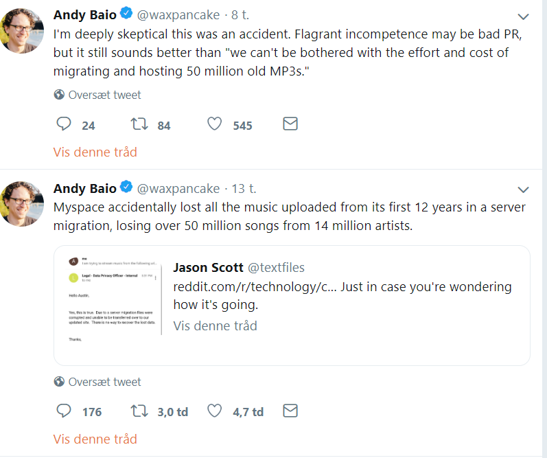 "Flagrant inkompetence er måske dårlig PR, men det lyder stadig bedre end, 'vi kan ikke være generet af indsatsen og omkostningerne ved at migrere og hoste 50 millioner gamle MP3'er," skriver han.