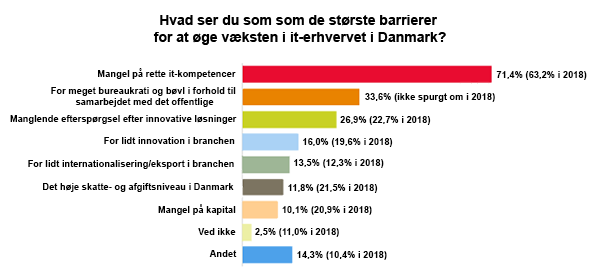 Næsten to tredjedele af de adspurgte danske virksomheder peger i undersøgelsen på, at den største barriere for vækst er manglen på de rette it-kompetencer.