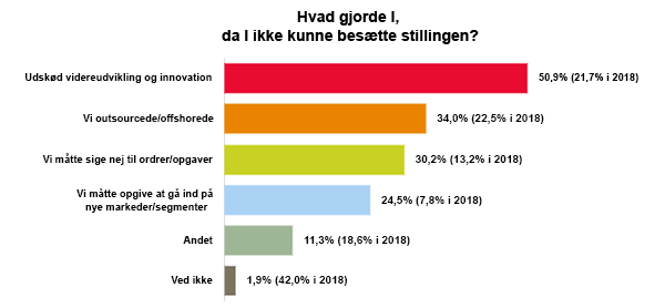 Og næsten hver tredje virksomheder har i det seneste år været nødt til at sige nej til ordre og opgaver på grund af mandskabsmangel.