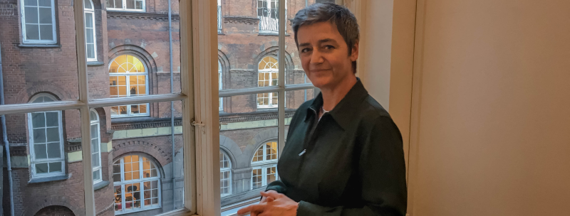 Alligevel meddeler EU's danske konkurrencekommissær, Margrethe Vestager (R), nu, at de europæiske lande bør gå forrest, når det kommer til indførelsen af en digital skat, der også går under navnet 'GAFA-tax,' opkaldt efter teknologigiganterne Google, Apple, Facebook og Amazon.