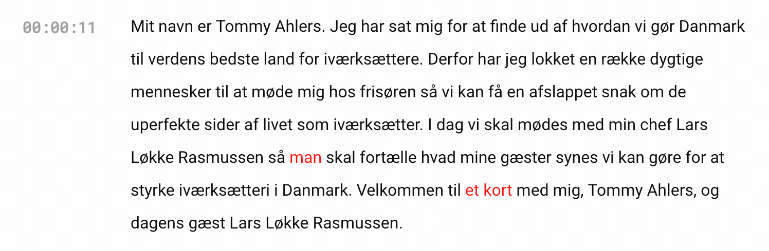 Tag nedenstående eksempel, som vores platform har transskriberet: