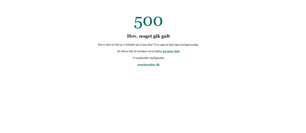 "Vi oplever i øjeblikket tekniske problemer på Watch Medier. Vi arbejder på højtryk for at rette fejlen og beklager ulejligheden."