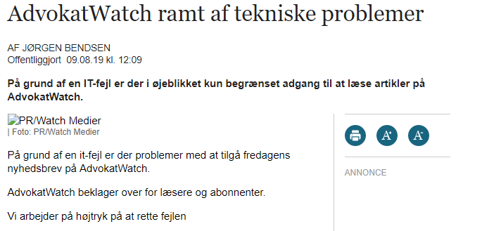 Computerworld har 12.35 formået at få sporadisk adgang til ITWatch, MedWatch og AdvokatWatch.